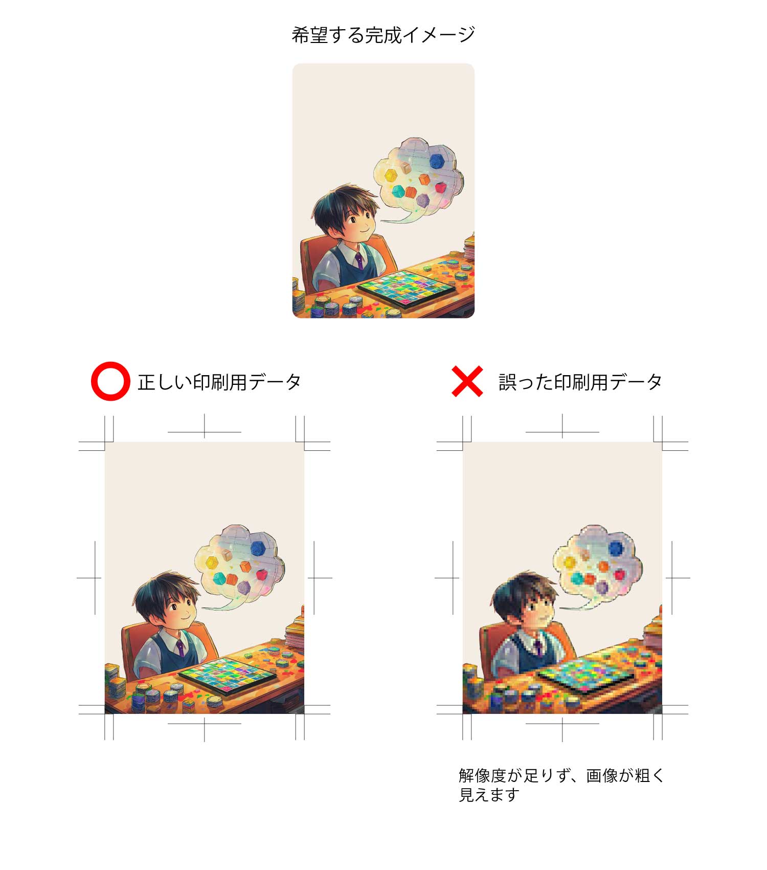 なお、他で制作した画像を萬印堂のテンプレートに貼り付ける場合は、その貼り付けた画像自体の解像度がそのまま反映されますので、貼り付けるデータの解像度にご注意ください。