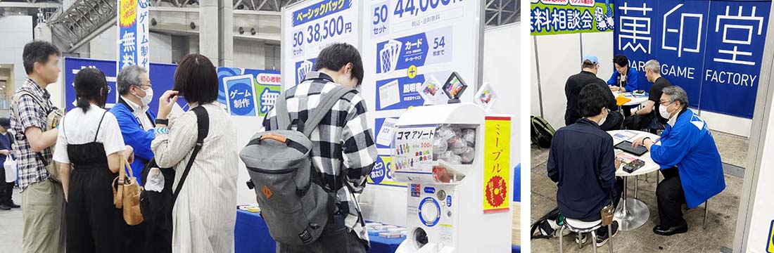 普段は土曜日を中心に行っている「ゲーム制作に関する無料相談会」ですが、ゲームマーケット会場に場所を移して、豊富なサンプルをお見せしながら、ゲーム制作に関するあらゆる疑問にスタッフが丁寧にお答えします。